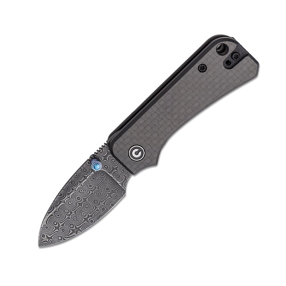 CIVIVI Baby Banter-Twill Carbon Fiber Overlay On Black G10 Handle Black Hand Rubbed Damascus Blade C19068S-DS1