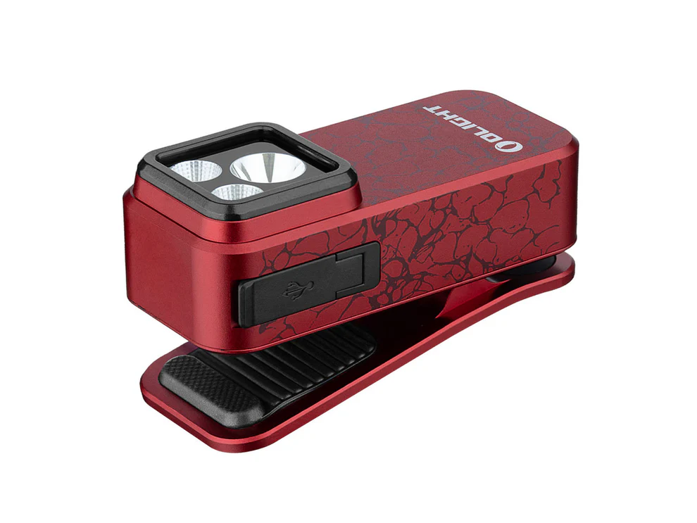 Oclip Pro (Molten Lava) A clip-on light with three light sources and multiple fixing methods