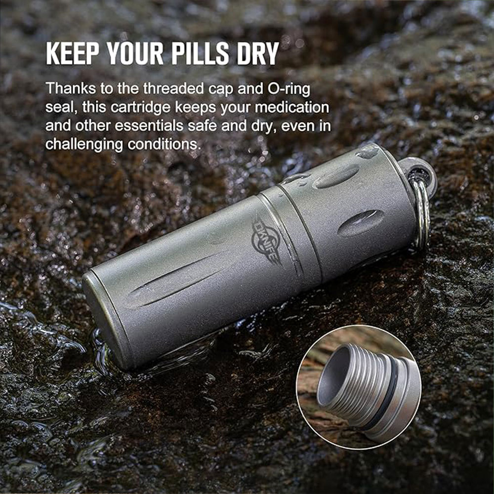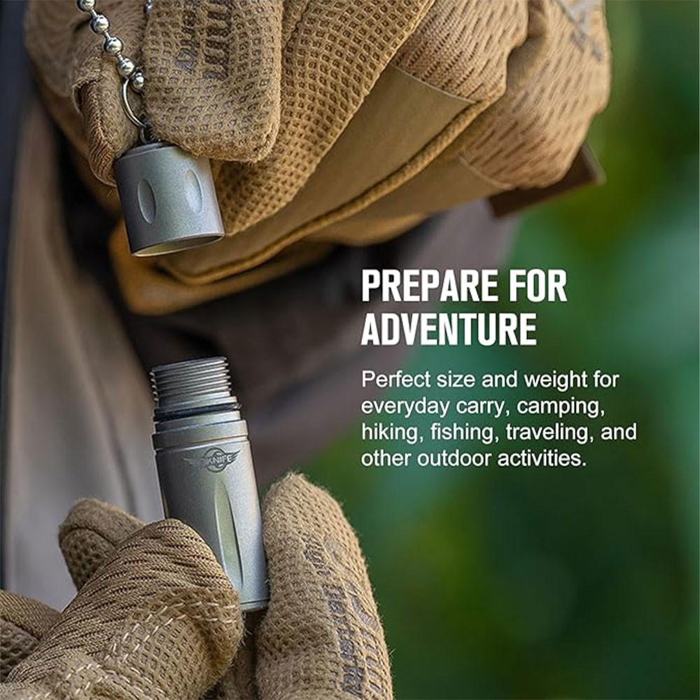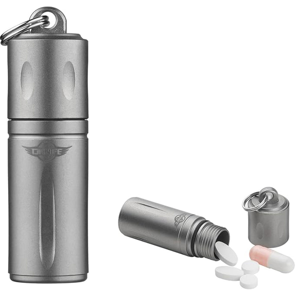 The Oknife Otacle H1 Titanium Storage Capsule is machined from lightweight, corrosion-resistant TA1 titanium alloy and rated IPX4. It offers a compact, weather-resistant storage solution for transporting your medications and other small EDC essentials. You can take this miniature capsule with you on your daily adventures, using the key ring for attaching to a bag, a belt, or a keychain.