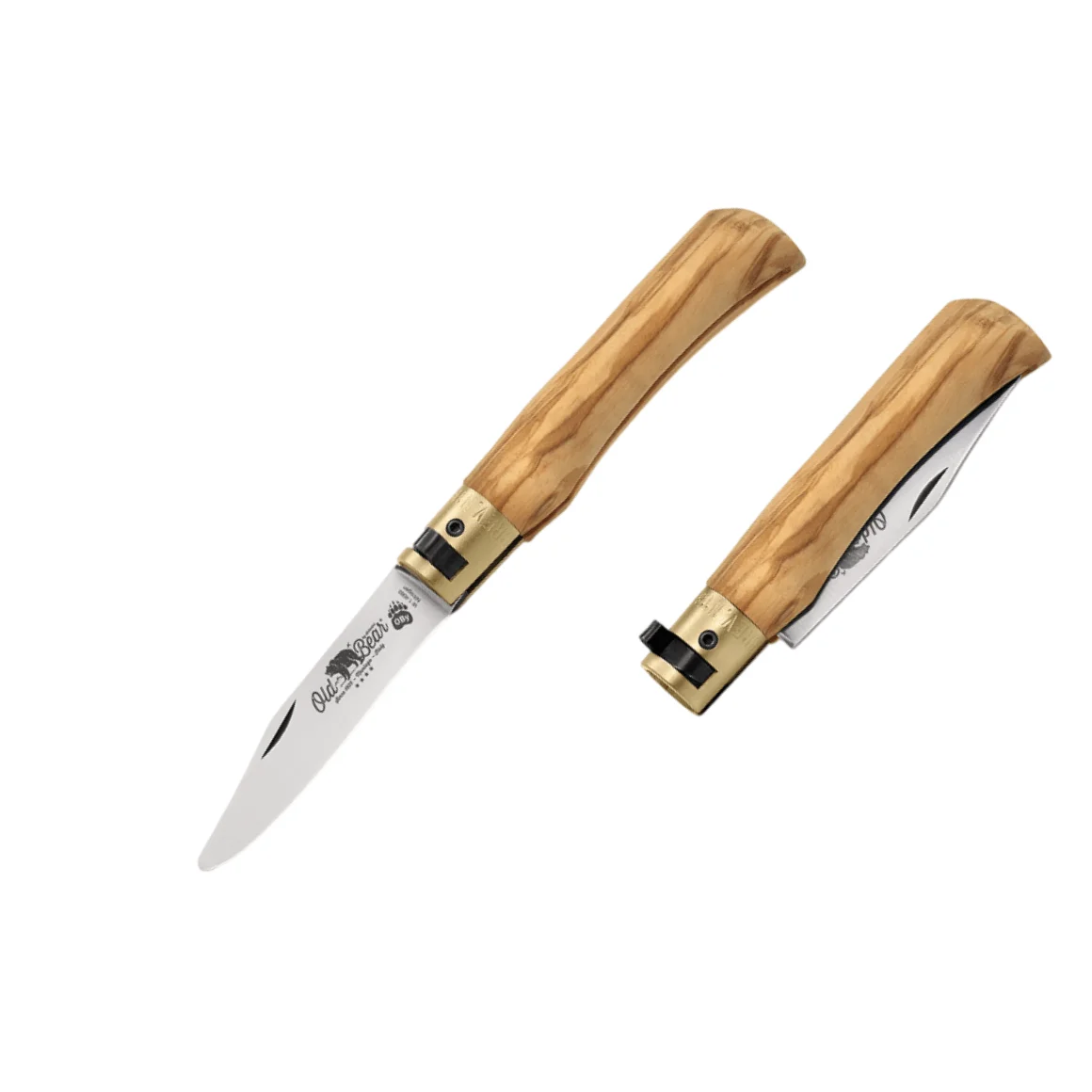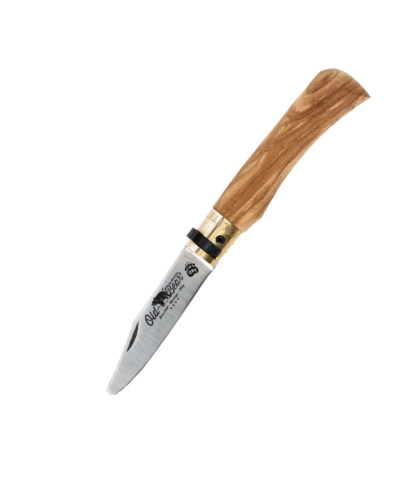 Old Bear OLIVE-wood handle, satin with rounded tip W 1.4060 blade; (“S” size)