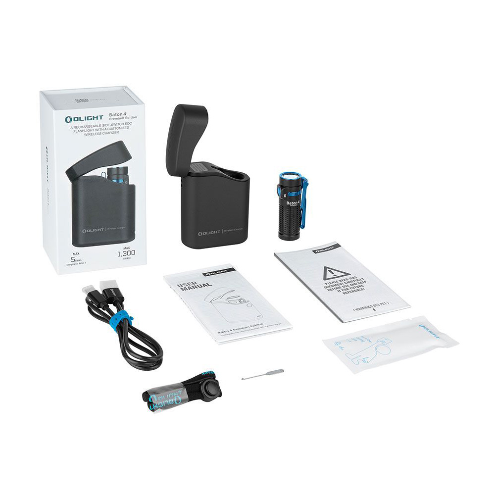 | ● | Baton 4 Standard: Flashlight (Battery and Pocket Clip Included) x 1, MCC 1A Magnetic Charging Cable x 1, Pouch × 1, User Manual ×1 |
